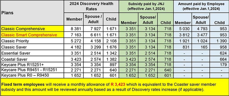 Employees on fixed term contract (FTC) will receive an allowance = Coastal Saver Member Subsidy amount & it increase every time the Medical aid Subsidy Amounts increase.